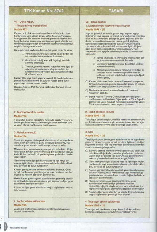 TÜRK TİCARET KANUNU TASARISINDA YER ALAN DENİZ RAPORUYLA İLGİLİ DEĞİŞİKLİKLER (2007)